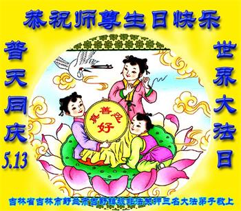 黑龍江省佳木斯地區大法弟子一家三口恭賀法輪大法日!