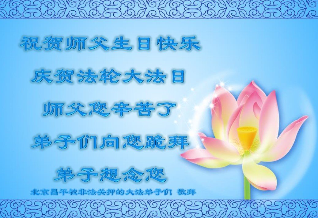 北京昌平被非法關押的大法弟子們同慶世界法輪大法日!恭祝師父生日快樂!法輪大法好!