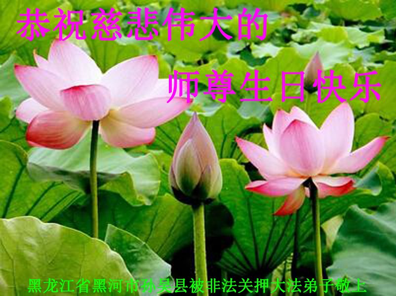 黑龍江省黑河市孫吳縣被非法關押的大法弟子恭祝師父生日快樂!