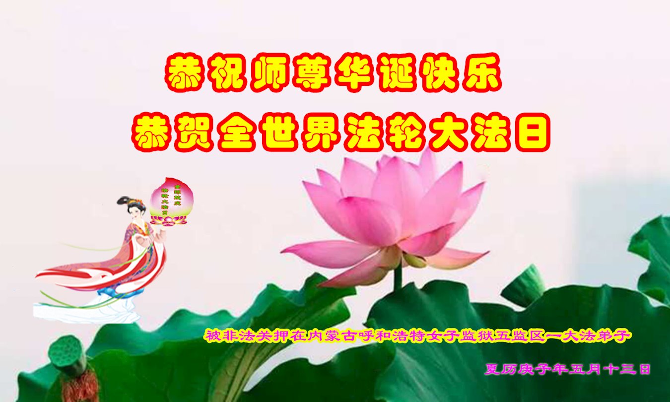 被非法關押在內蒙古呼和浩特女子監獄五監區的一大法弟子給慈悲偉大的師父問好!恭賀全世界法輪大法日!祝願師尊每一個節日快樂!