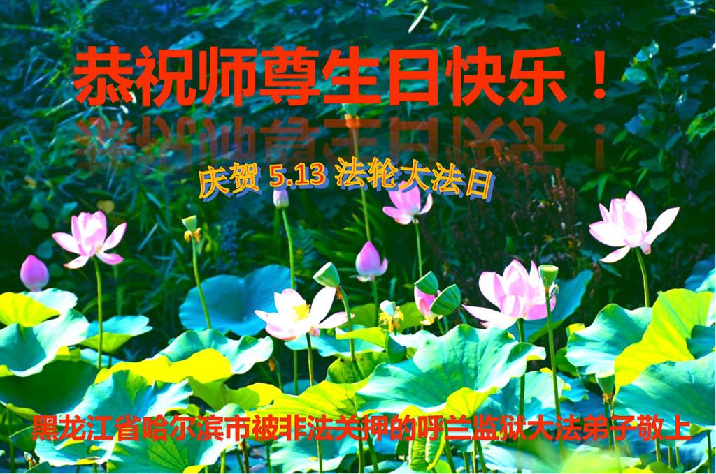 黑龍江省哈爾濱市雙城區被非法關押在呼蘭監獄的大法弟子恭祝師尊生日快樂!恭賀世界法輪大法日!