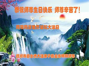 遼寧省撫順市一大法弟子恭祝師尊生日快樂!同賀世界法輪大法日!