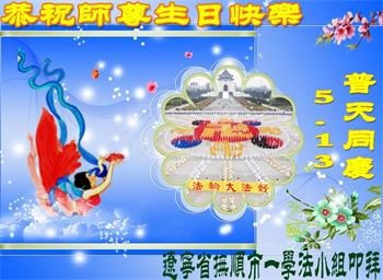 遼寧省撫順一學法小組大法弟子恭祝師尊生日快樂!同慶世界法輪大法日!