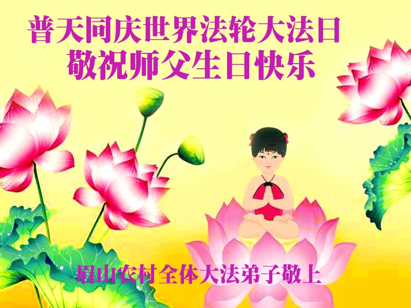 四川省眉山市一農村大法弟子全家恭祝慈悲偉大的師尊生日快樂!恭賀世界法輪大法日!