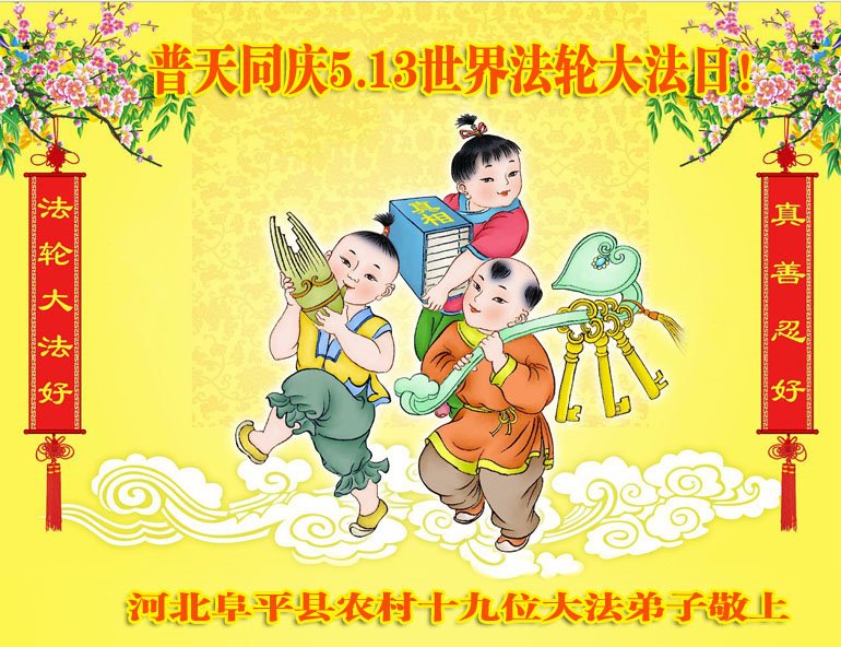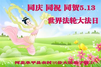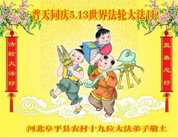 河北省保定市阜平縣農村三位大法弟子同慶同祝同賀5.13世界法輪大法日