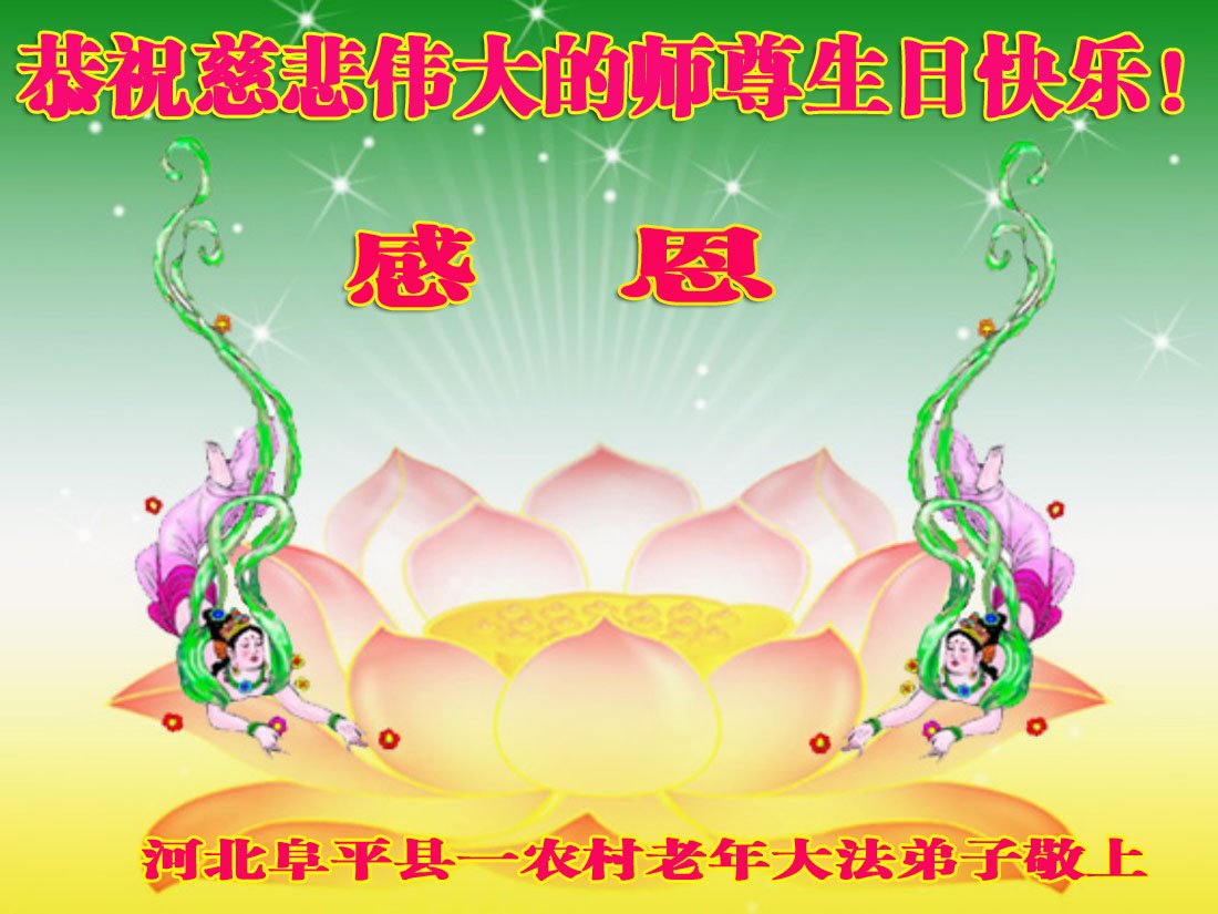河北省保定市阜平縣農村一位七十多歲的大法弟子恭祝偉大的師尊生日快樂!