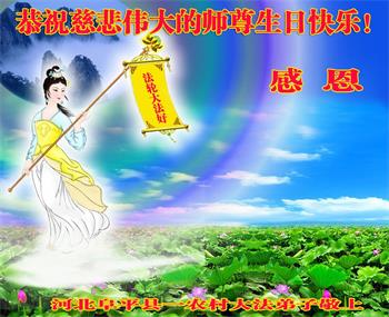河北農村一學法小組全體大法弟子恭祝慈悲偉大的師尊生日快樂!