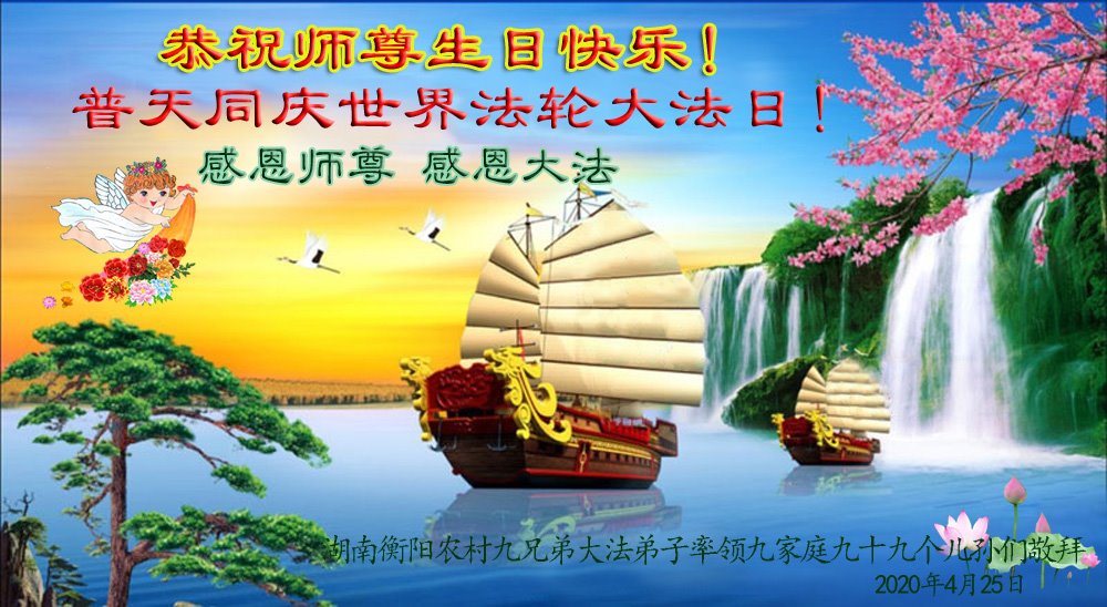 湖南省衡陽農村九兄弟大法弟子率領九十九個兒孫恭祝師尊生日快樂!