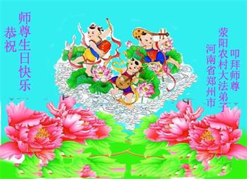 河南省鄭州市滎陽農村大法弟子叩拜師尊!恭祝師尊生日快樂!
