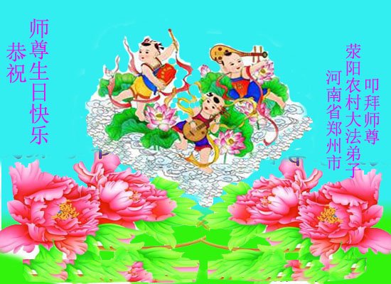 河南省鄭州市滎陽農村大法弟子恭祝師尊生日快樂!