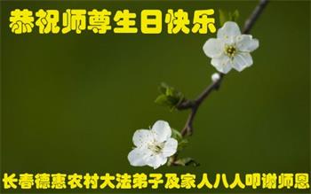 吉林省長春市德惠農村大法弟子及家人八人恭祝師尊生日快樂!