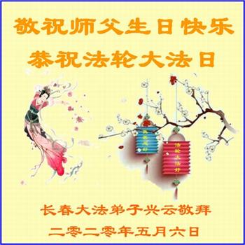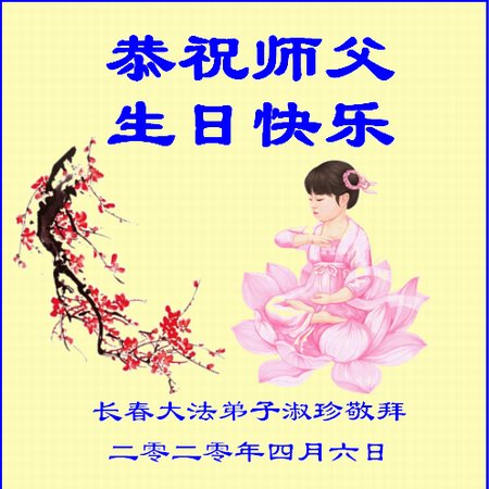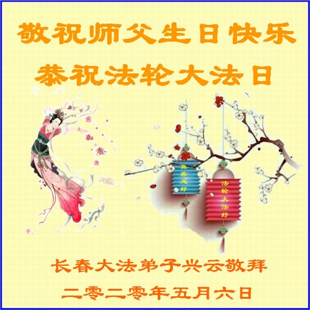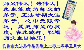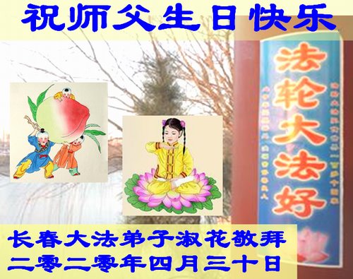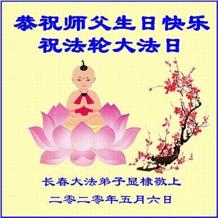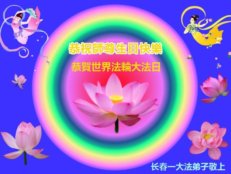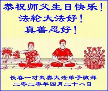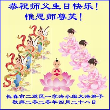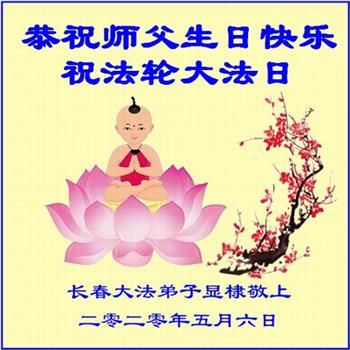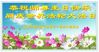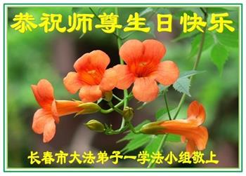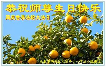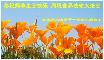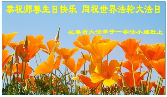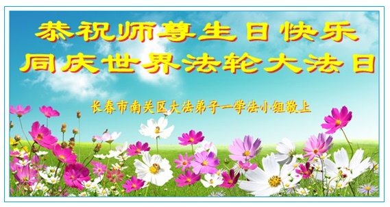 吉林省長春市一學法小組大法弟子恭祝師父生日快樂!師父辛苦了!同時恭賀世界法輪大法日,在正法最後的時刻,小組同修要努力配合好,做好師父讓做好的三件事,圓滿隨師父回家。