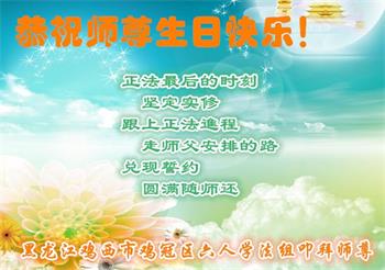一個學法小組四名大法弟子恭祝師尊生日快樂!