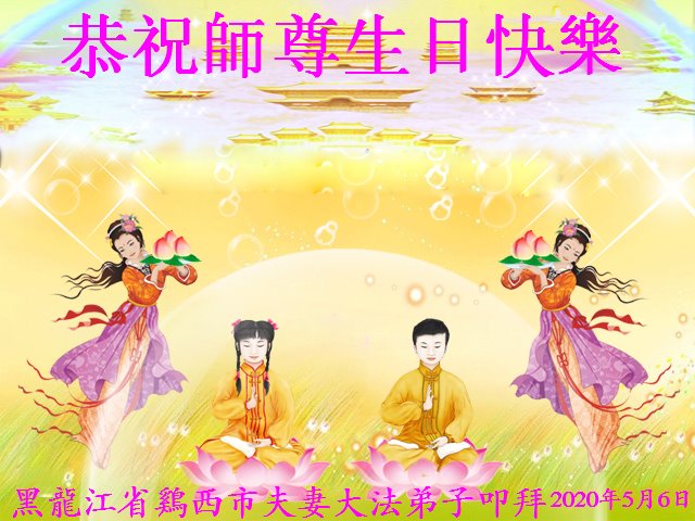 又是一年5.13,今年特別不一樣,弟子倍加感恩師尊慈悲看護,在這普天同慶的日子裏,弟子在大陸遙向恩師叩首,想念師父,希望更多的世人能得救,代表全家的大法弟子和常人:恭祝師父生日快樂!恭賀世界法輪大法日!