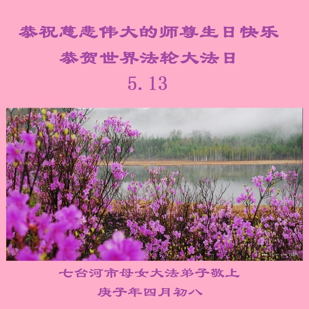 黑龍江七台河一家大法弟子恭祝師父生日快樂!