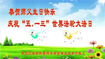 黑龍江省勃利縣種羊場全體大法弟子賀詞:恭祝師父生日快樂!