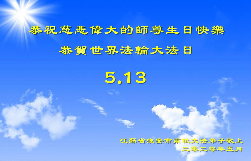 江蘇省淮安市兩位大法弟子恭祝慈悲偉大的師尊生日快樂!
