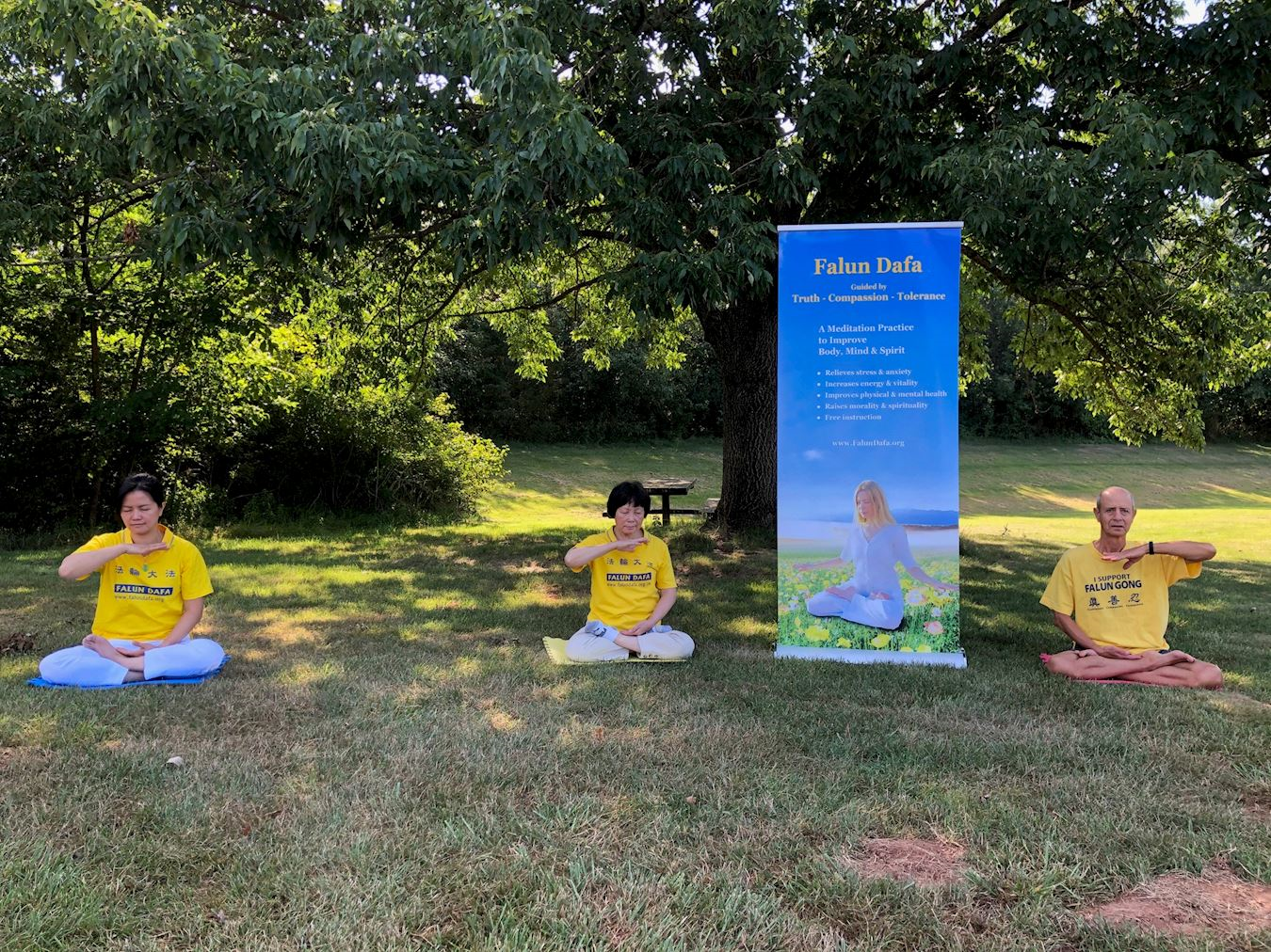 ![]() 圖:桑莫塞郡的部份法輪功學員疫情期間堅持戶外弘法煉功。 |