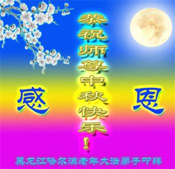 黑龍江省哈爾濱市依蘭縣各學法小組大法弟子恭祝慈悲偉大的師尊中秋節快樂!