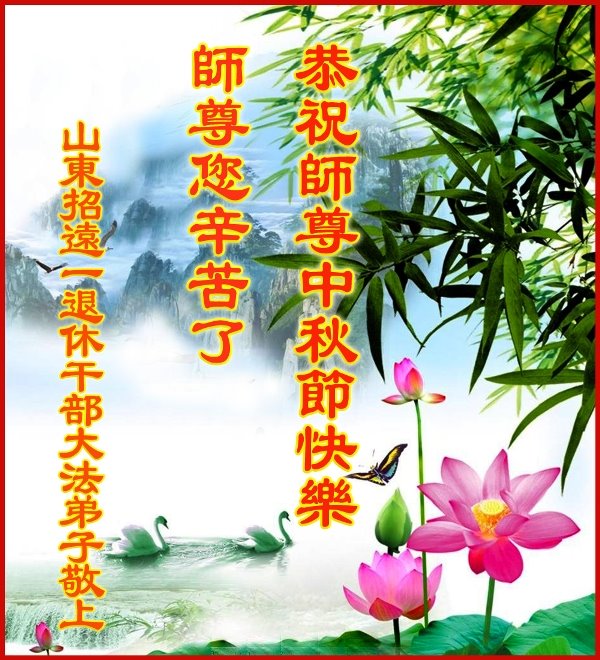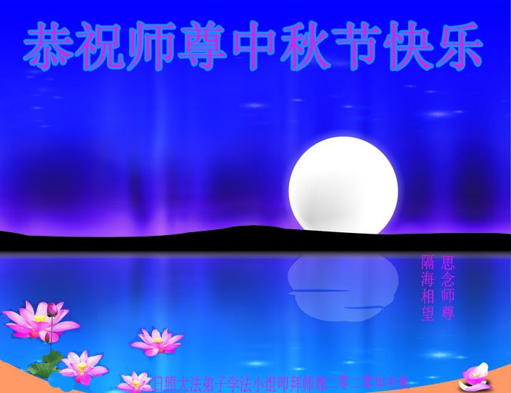 恭祝師尊中秋快樂!師父啊,謝謝您帶我們走上了回家的路!在正法的最後時期,我們小組全體大法弟子一定按師父的要求做,走好最後的路,期盼早日與師父團聚。