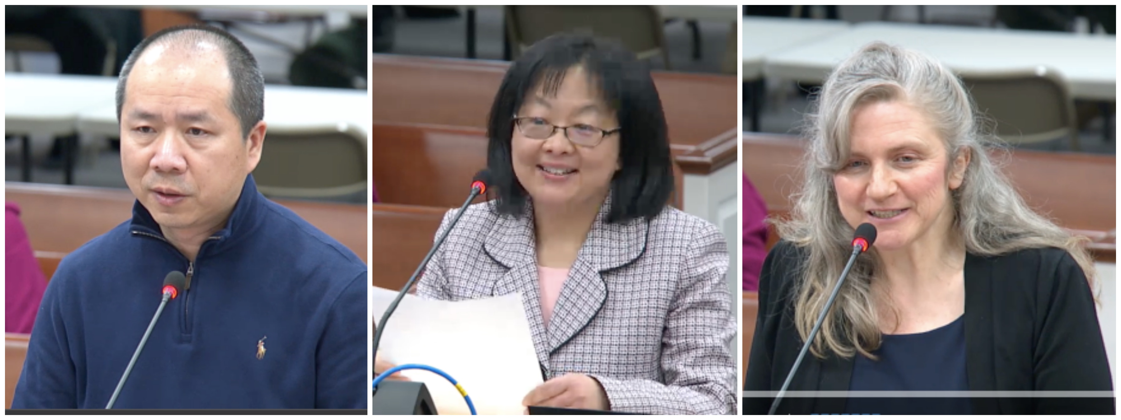 ![]() 圖4: 法輪功學員代表在會上發言。從左至右:亞歷克斯﹒王(Alex Wang)、蒂娜﹒唐(Tiny Tang)和凱瑞﹒努涅斯(Kery Nunez) |