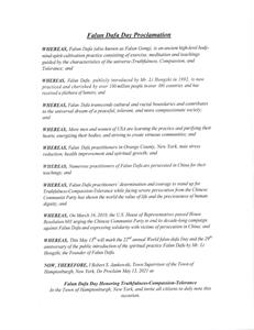 現在,因此,我們在慶祝法輪大法向美國傳播及在哈德遜流域壯大時,我們決定褒獎和讚譽世界法輪大法日。