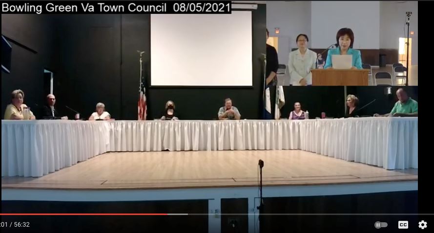 ![]() 圖1:二零二一年八月五日晚,美國弗吉尼亞州鮑靈格林鎮(Bowling Green)議會通過了一項譴責中共迫害法輪功的決議案。圖為該會議網絡截圖。 |