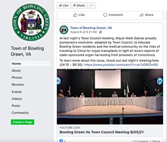 進一步決議,通知鮑靈格林鎮和附近地區的居民和醫療界,有關前往中國進行器官移植的風險,以幫助制止居住在當地的公民無意間成為(中共)國家認可的活摘良心犯器官行徑的共謀;