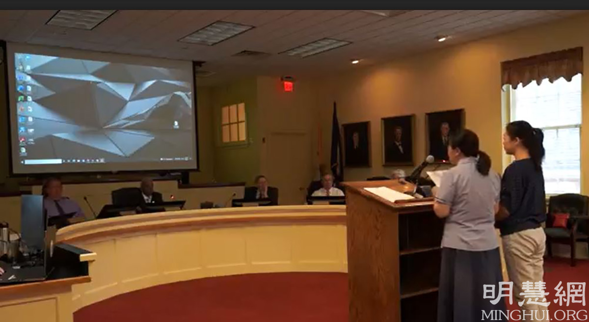 ![]() 圖1:二零二一年八月三日晚,美國弗吉尼亞州米德爾塞克斯郡(Middlesex County)委員會通過一項決議案,譴責中共活摘法輪功學員器官。圖為會議現場法輪功學員在發言。 |