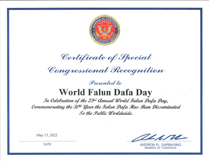 ![]() 圖5:紐約州第二選區聯邦眾議員安德魯﹒加巴裏諾(Andrew Garbarino)頒發美國國會特別褒獎令,「慶賀第二十三屆世界法輪大法日暨法輪大法洪傳世界三十週年」。 |