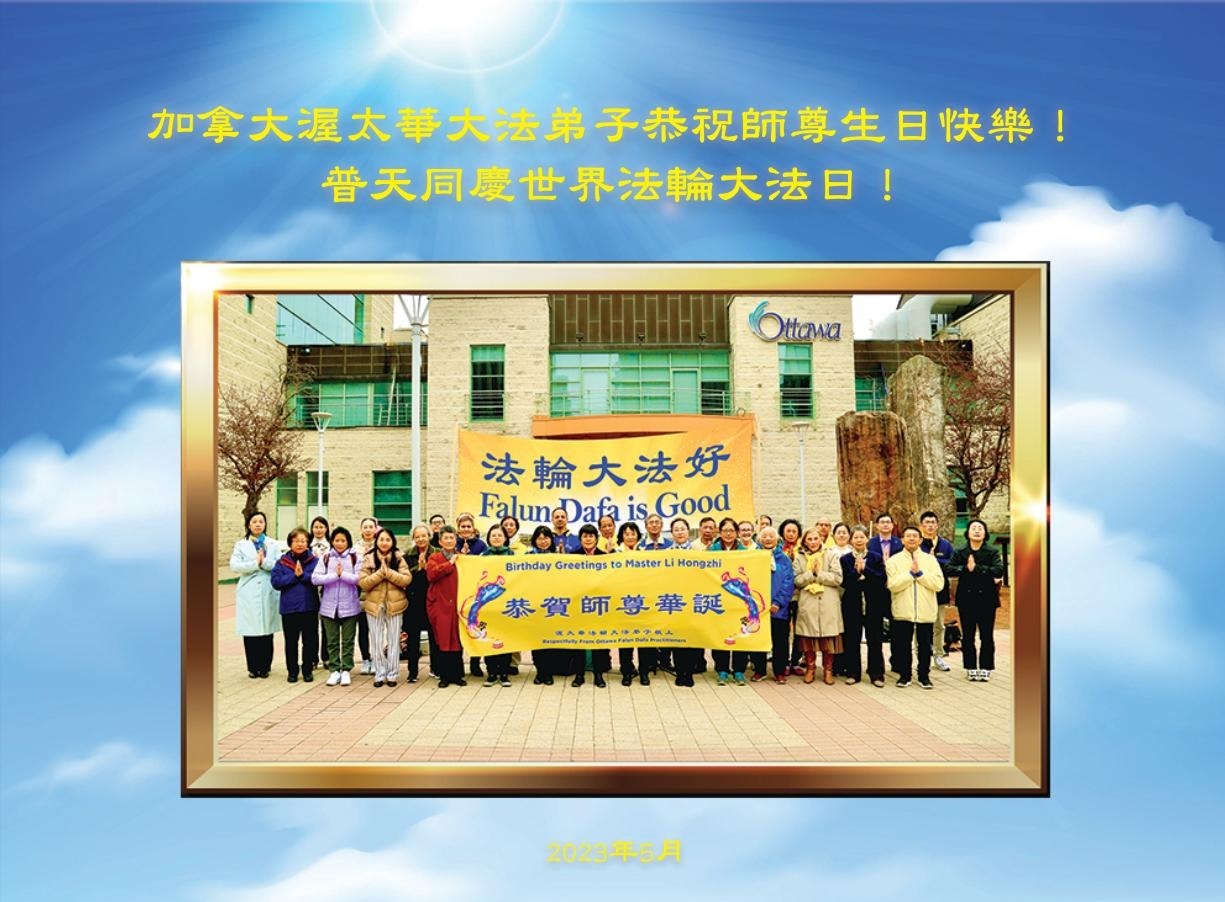 在法輪大法日前夕,渥太華法輪功學員共同慶祝世界法輪大法日,並祝賀師尊七十二歲華誕。