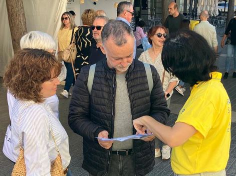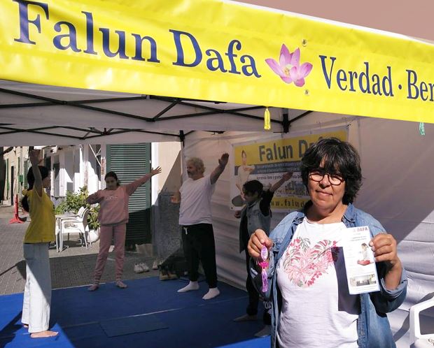 來自該島首府帕爾馬的弗朗西斯科(Francisco)和胡安妮(Juani)夫婦被音樂所吸引來到法輪功展位,在看到學員們演示的法輪功功法後表示:他們非常喜歡這個來自東方的修煉功法,他們還表示會把傳單和小蓮花寄給在印度的女兒。弗朗西斯科說:「真、善、忍原則必須成為學校的必修課,因為現今社會亟須這些價值觀。」胡安妮表示她將會去帕爾馬的煉功點學習法輪功。