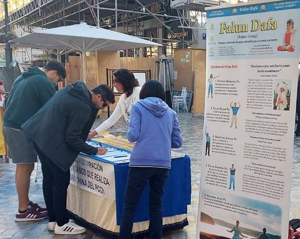 年輕小伙子安東尼奧(Antonio)和女朋友一起在要求中共停止迫害法輪功的請願書上簽了名,他表示:「人人生來擁有相同的權利,可以自由生活的權利,不應該因為信仰而被殺害或者身陷牢獄,人人都有言論自由和信仰的權利,應該自由表達自己的喜好。」