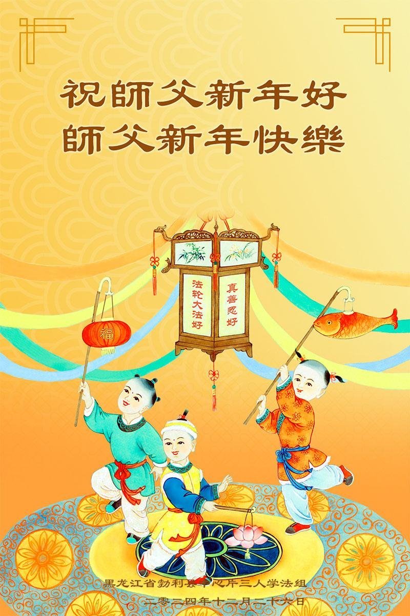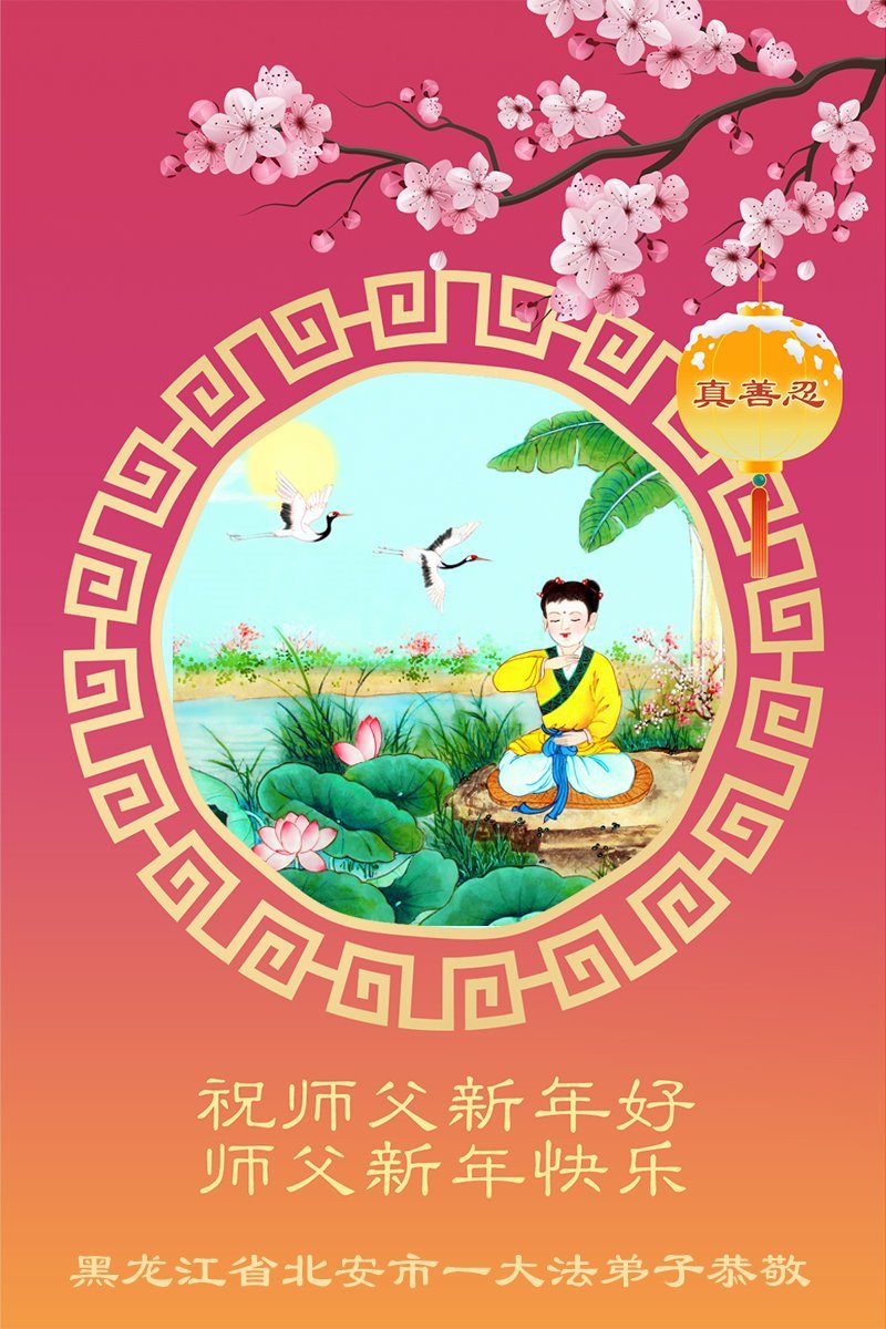 我代表我們全家老少四輩給師父磕頭,恭祝師尊新年好!感恩慈悲偉大的師尊救度之恩!弟子一定學好法,走好最後正法修煉之路,圓滿隨師還。