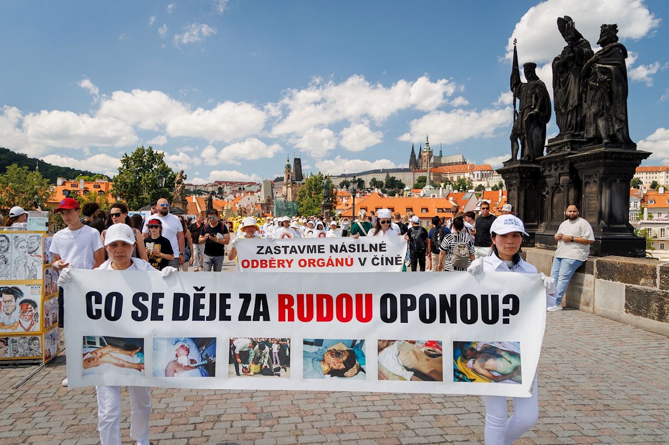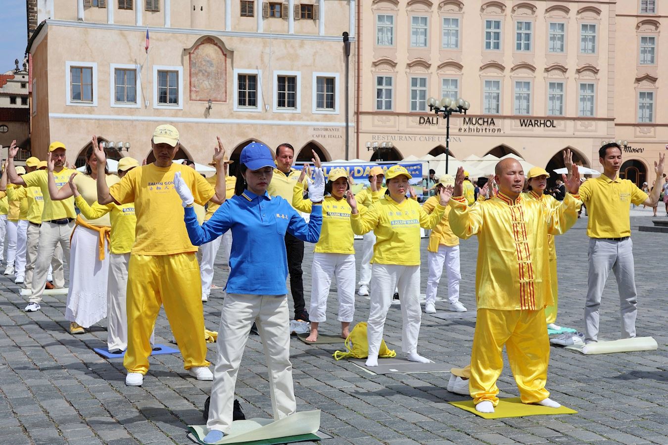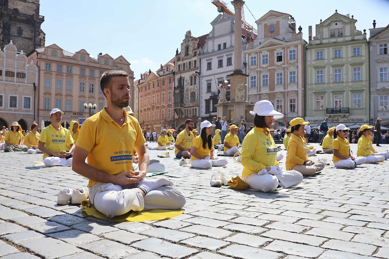 由歐洲法輪功學員發起的集會遊行活動前,學員們在演講中希望讓更多人了解法輪大法的美好,以及正在中國發生的對法輪功學員的血腥迫害。遊行從城堡廣場(Hradcany Square)出發,行經查理大橋(Charles Bridge),而後繞行城市大街小巷。