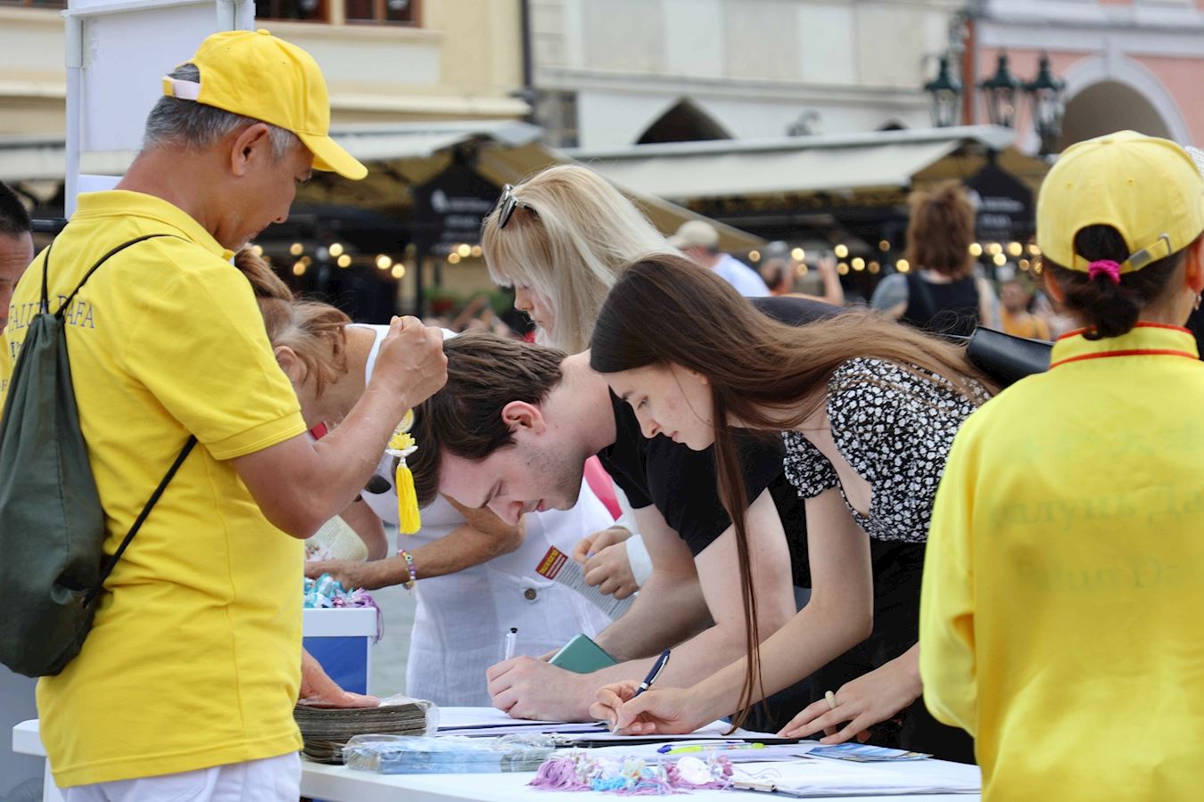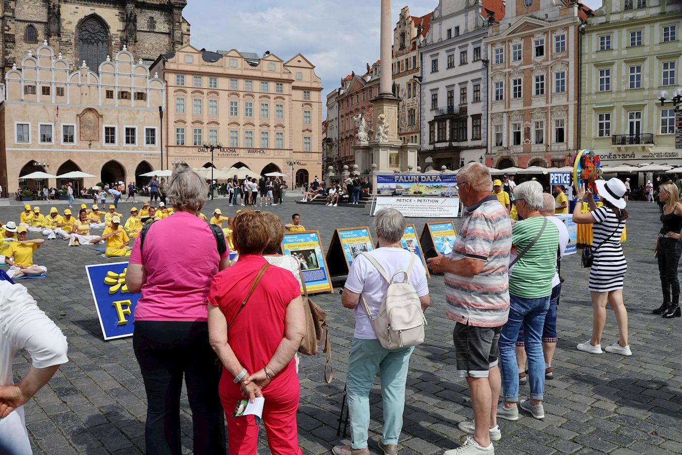 有些路人第二天,六月九日,在老城廣場(Old Town Square)看到天國樂團及法輪功學員的演出後,想到前一天看到的遊行,當即決定簽名支持,還讓朋友都一起來簽名。他們希望能幫助結束對法輪功學員的迫害。