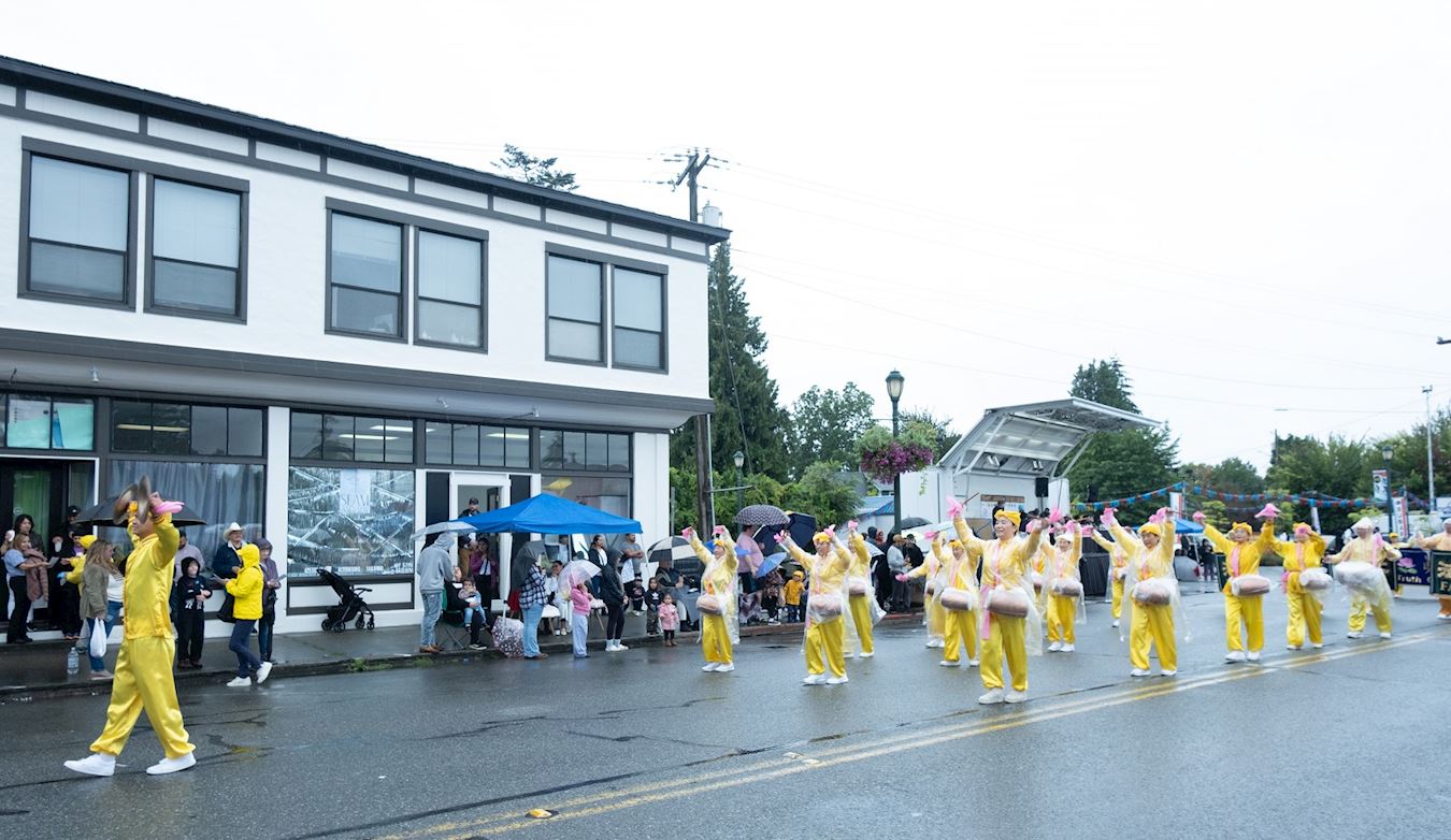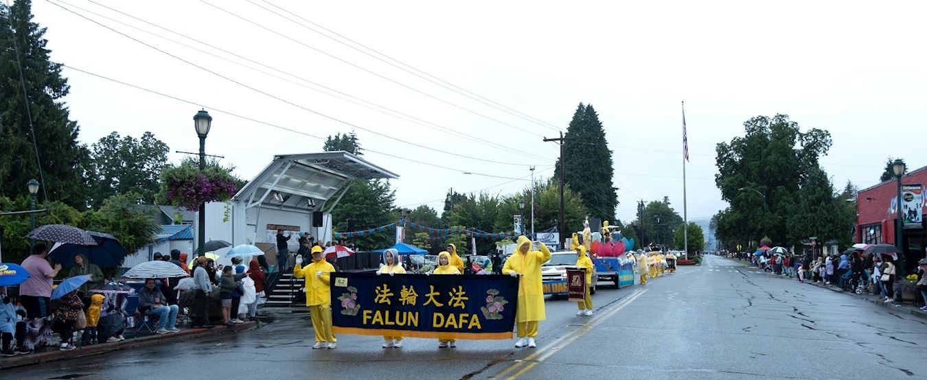 ![]() 圖1~3:法輪功學員在雨中參加了美國華盛頓州門羅市( Monroe)的集市盛會日遊行(Fair Days Parade) |