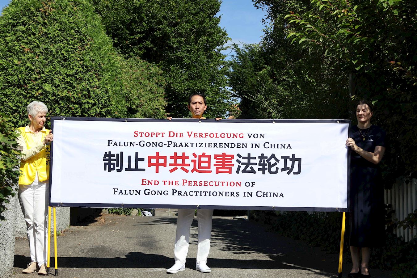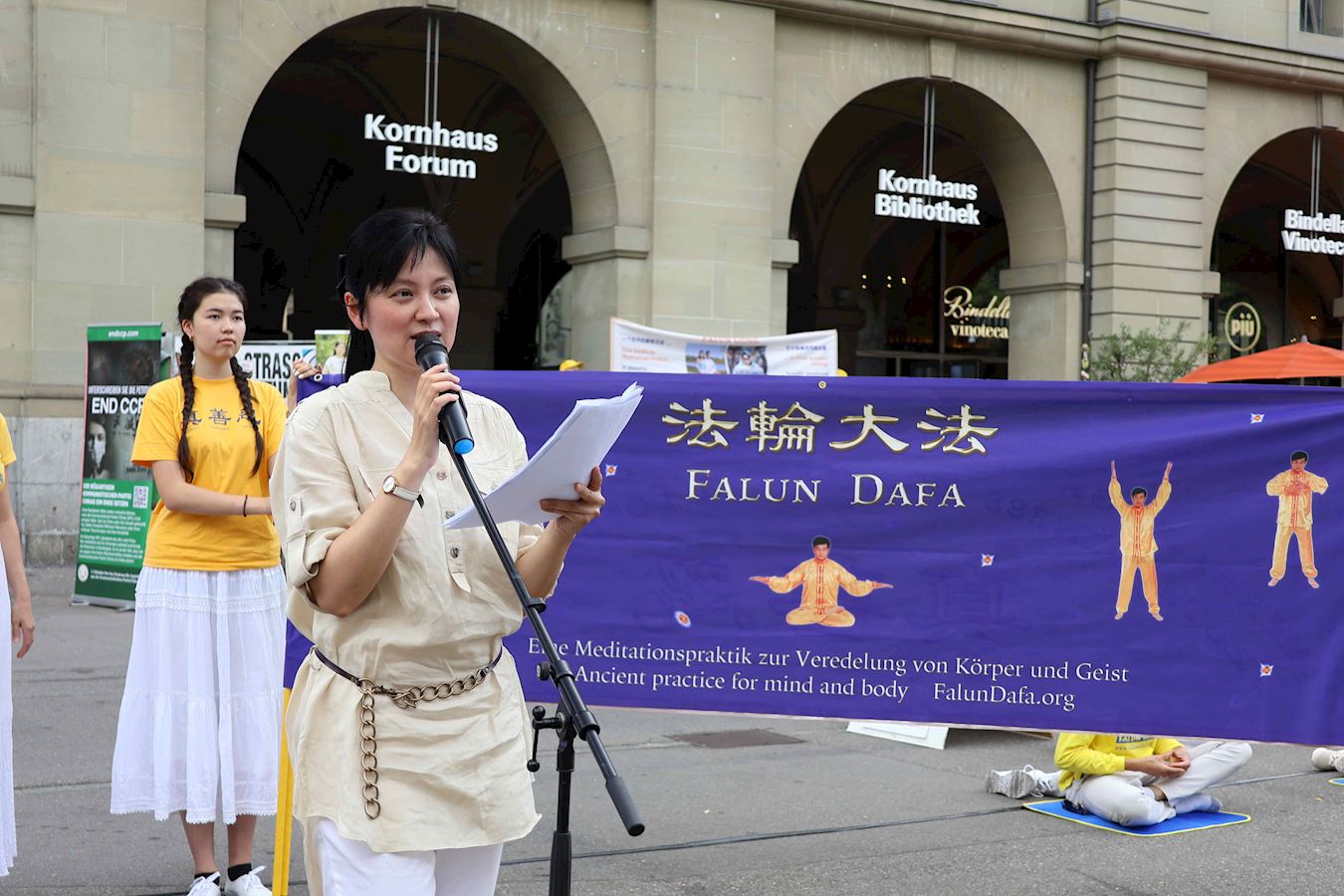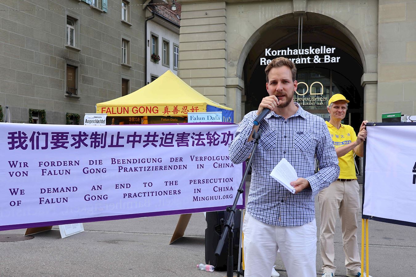 演講中也分享了當天上午在中共駐伯爾尼使館前宣讀的勸善信,在中文和德文的兩封信中,法輪功學員告訴中共使館工作人員:正因大法的美好,三十多年來弘傳世界上百個國家;也因迫害的危害,二十五年來多少家破人亡;但無論身在何處,來自哪個國家,中國,瑞士及世界各地的法輪功學員都希望您,身為使館的工作人員,能敞開心扉,了解真相,選擇美好的未來──為了您自己,也為了您的家人。