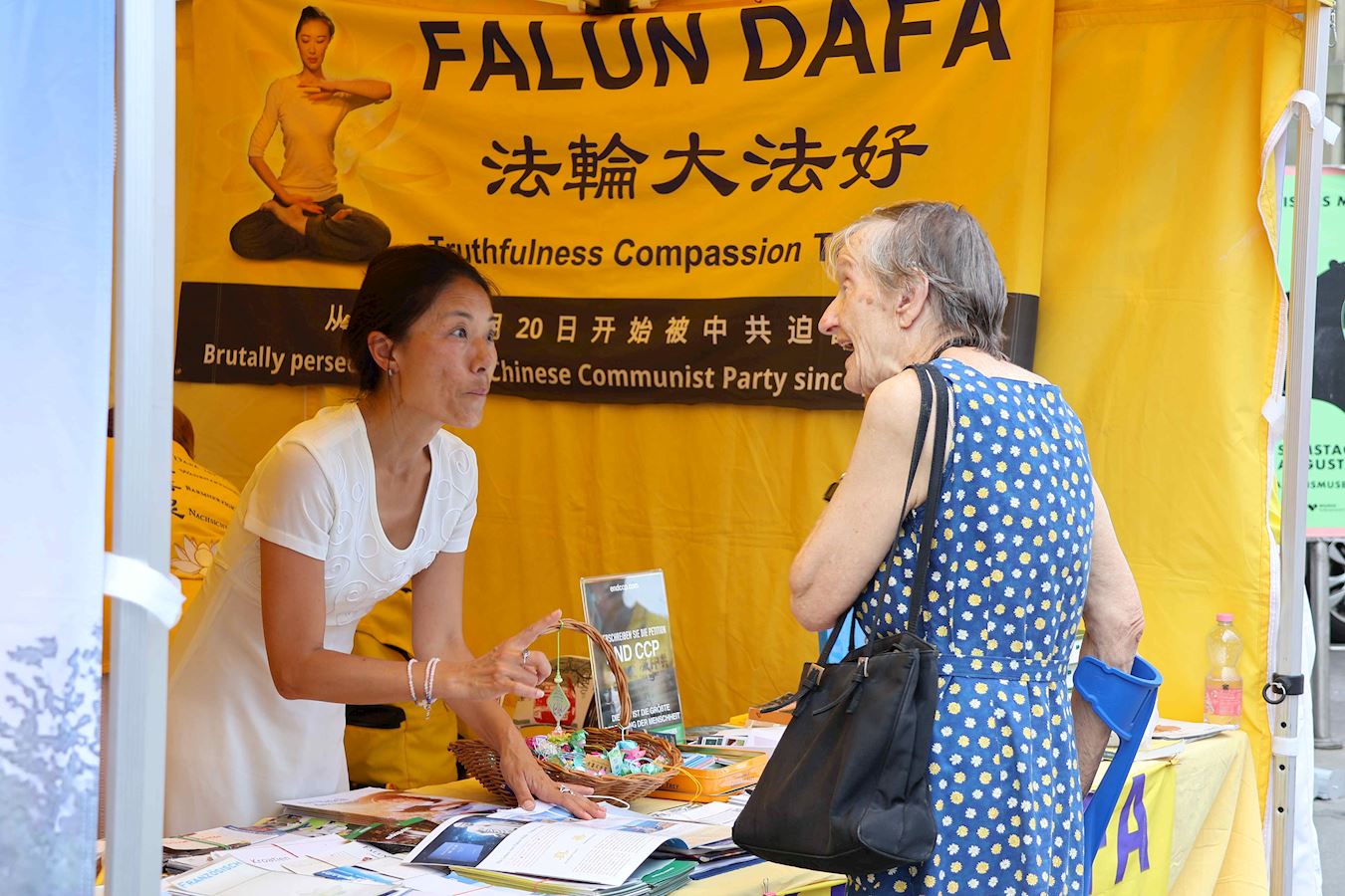在活動中還有母親為自己自閉症的女兒帶上寫有「法輪大法好,真善忍好」的小禮物,她認為這可以給容易害怕的女兒感到信任及希望。活動結束前夕,還有年過九旬的耄耋老婦在和學員交談後帶上大法訊息,打算回去後了解更多。