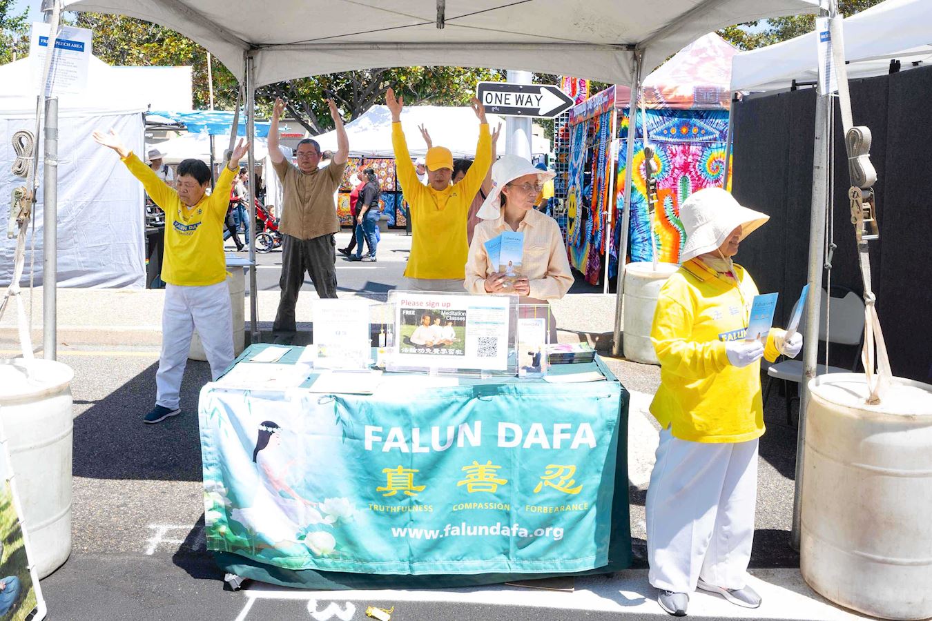 ![]() 圖1:法輪功學員參加了一年一度的佛利蒙藝術節(Fremont Festival Of The Arts),圖為法輪功學員的展位。 |