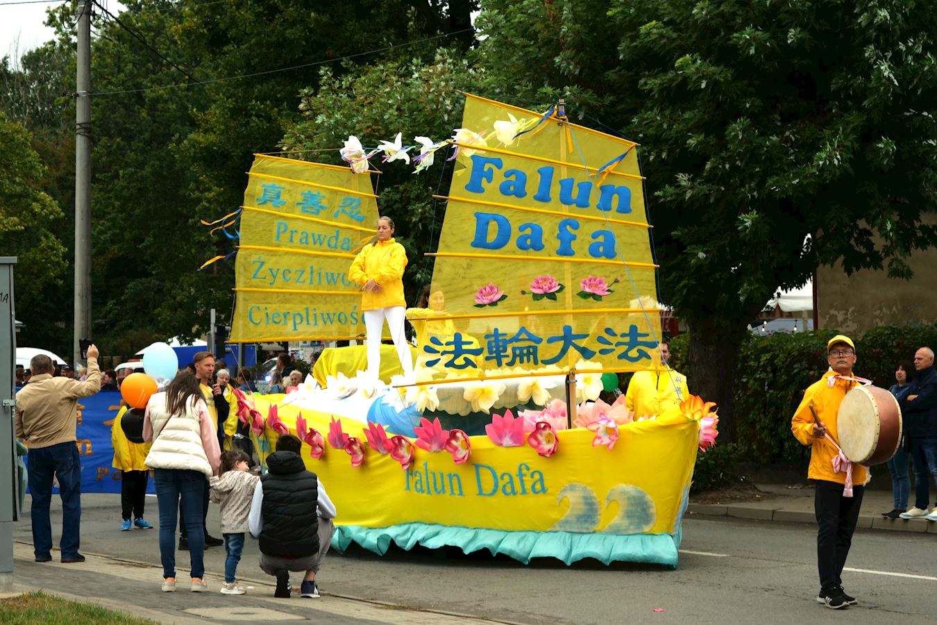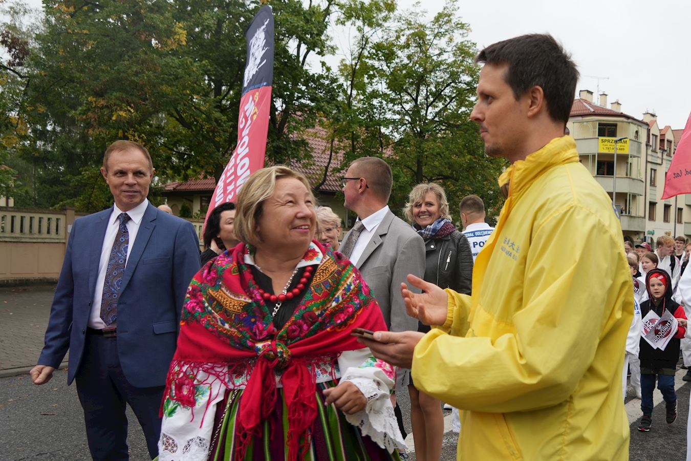 有一位身著色彩亮麗民族服裝的特洛伊•烏蘇拉(Trojan Urszula)女士興致勃勃地走在遊行隊伍中間。
