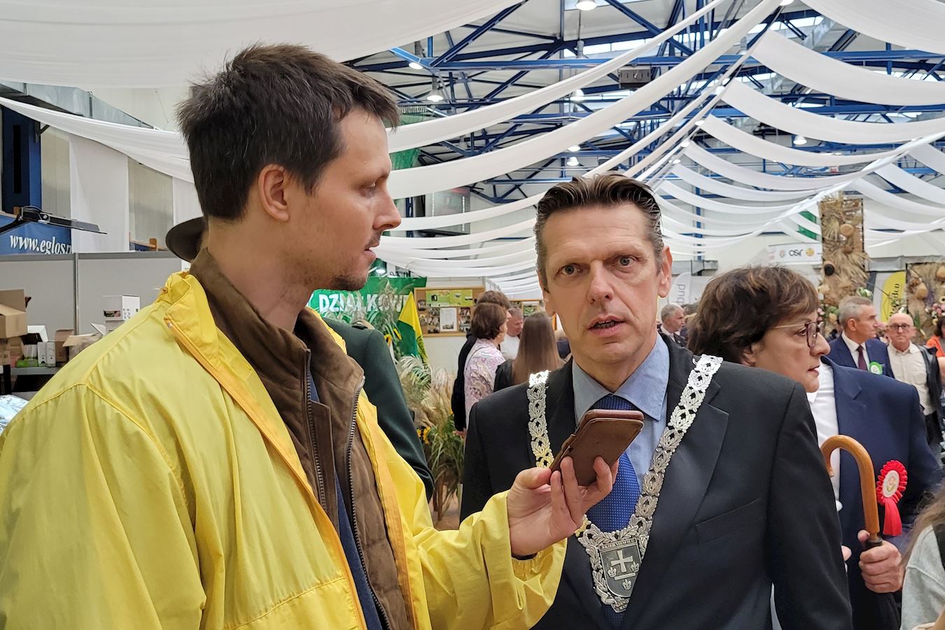 馬雷克•薩維克(Marek Sałek)先生是距斯凱爾涅維採市大約二十公里處的利普採•雷蒙托基(Lipce Reymontowskie)鎮鎮長,直轄九個主產水果村莊。他說:「我們來這裏參加這個遊行,是借此機會展現我們的辛勤勞動成果,也是用這種形式來感謝神的眷顧,所以今天既是豐收節,也是感恩節。」