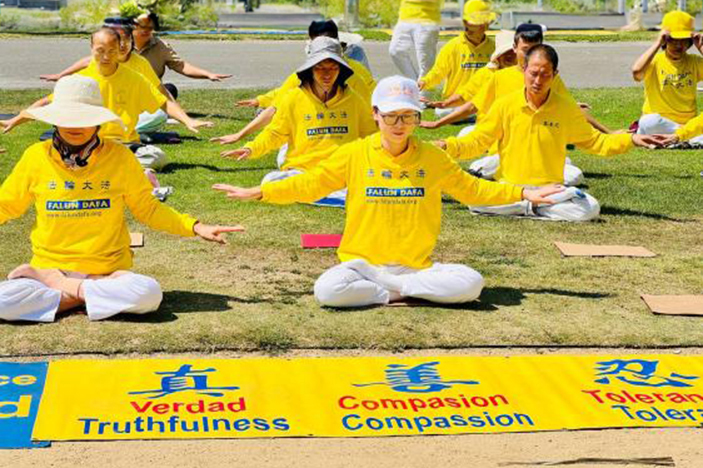 八月二十五日與九月一日的星期天及九月二日勞工節,洛杉磯部份法輪功學員在聖莫妮卡(Santa Monica)海灘邊舉行集體煉功、碼頭遊行、反迫害徵簽等活動。學員在海邊煉功時,吸引很多遊客駐足觀看,有的跟著學員煉功動作學煉。