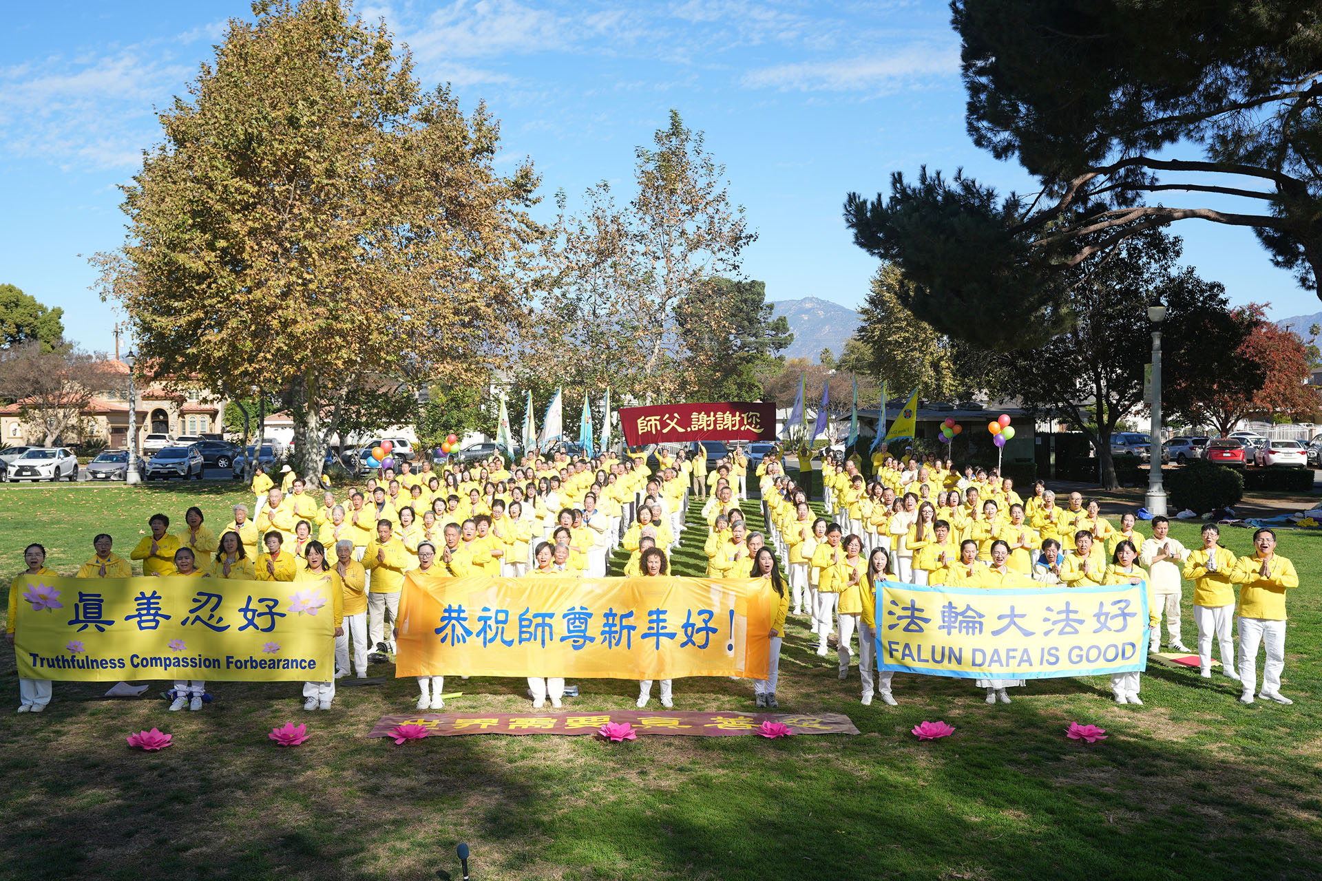 ![]() 圖1:二零二四年底,洛杉磯法輪功學員齊聚華人區聖蓋博市的文森特盧果公園(Vincent Lugo Park),向李洪志先生恭賀新年。 |