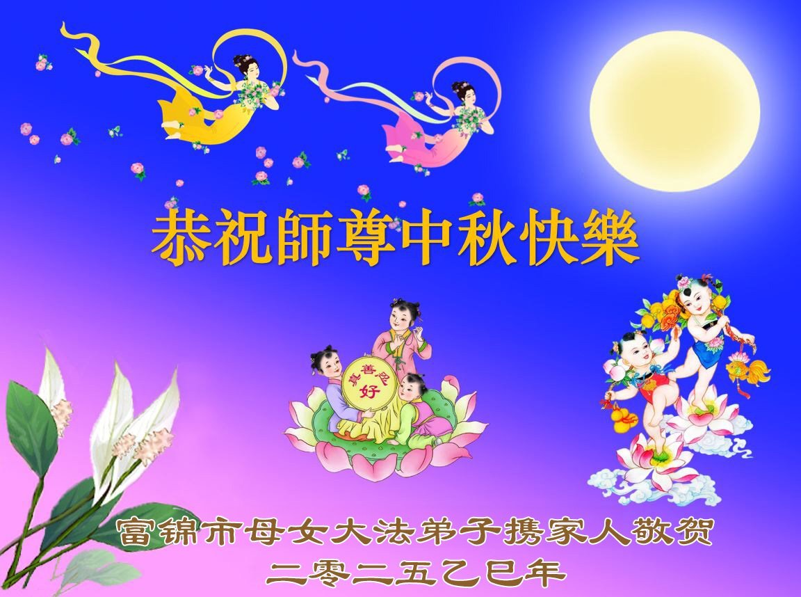 黑龍江省佳木斯市富錦市母女大法弟子攜家人恭祝師尊中秋快樂!