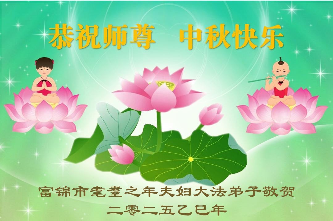 黑龍江省佳木斯市富錦市耄耋之年夫婦大法弟子恭祝師尊中秋快樂!