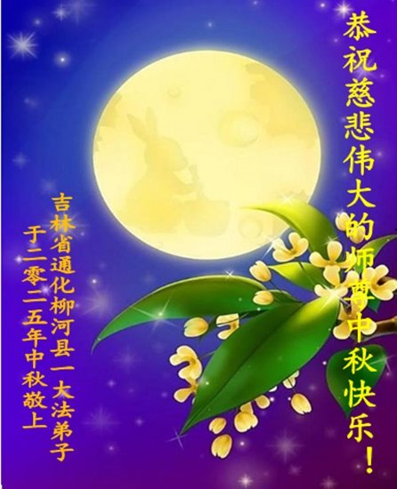 吉林省延邊州延吉市一姐妹大法弟子恭祝師尊中秋節快樂!