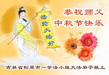 吉林省松原市一學法小組大法弟子恭祝師父中秋節快樂!感恩師父正念加持和慈悲保護!