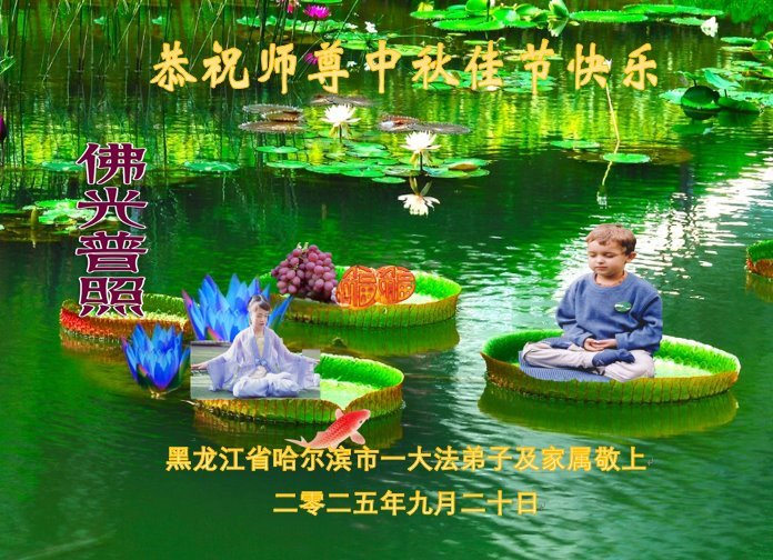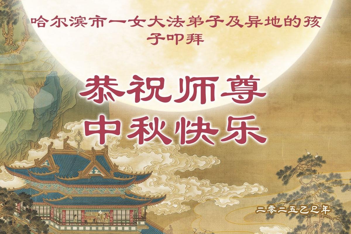 黑龍江省哈爾濱市一女大法弟子及在異地的孩子恭祝師尊中秋快樂!