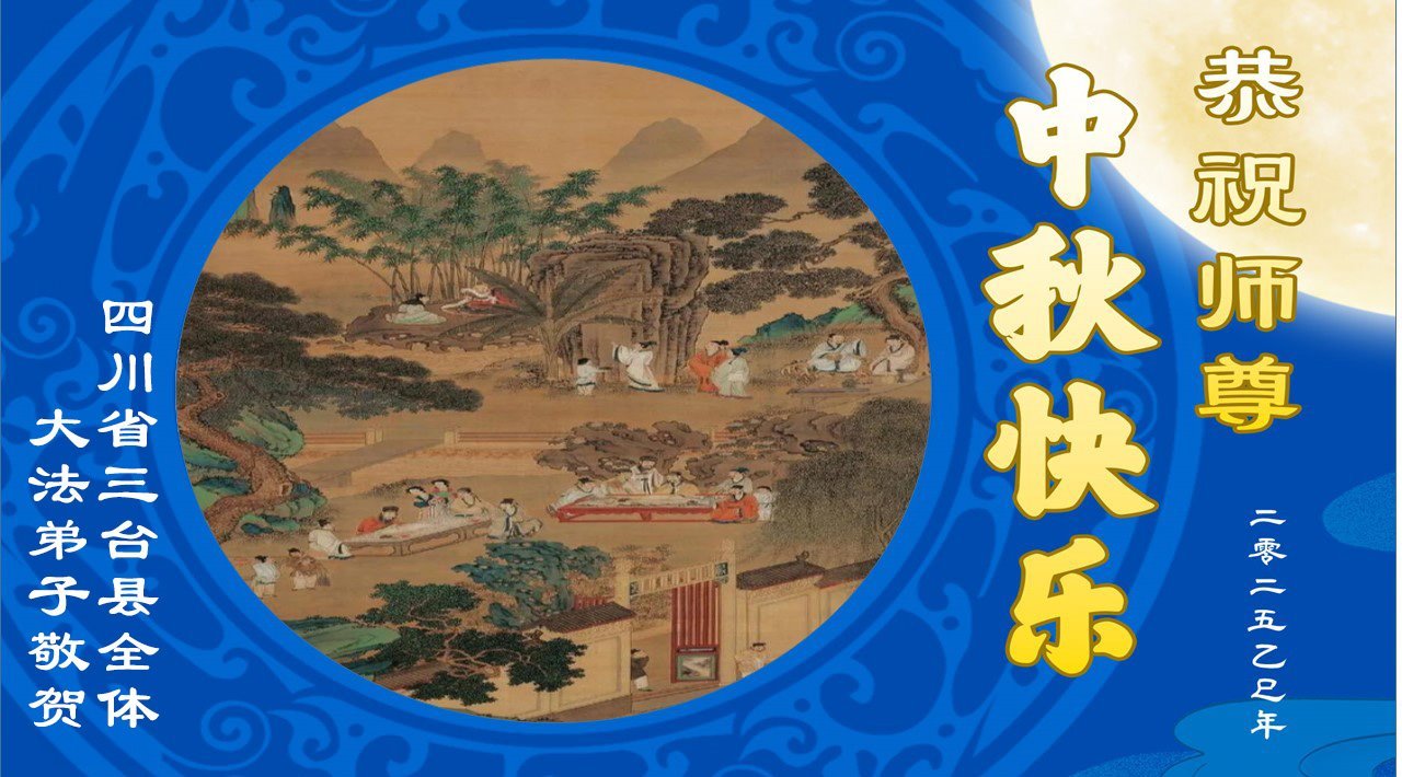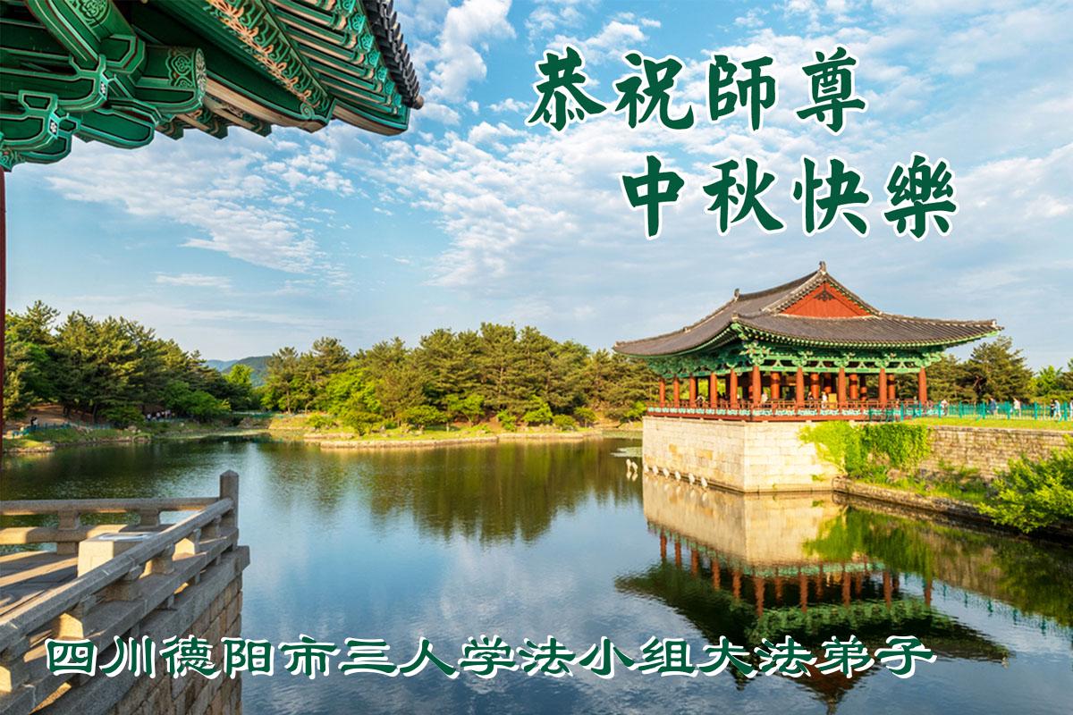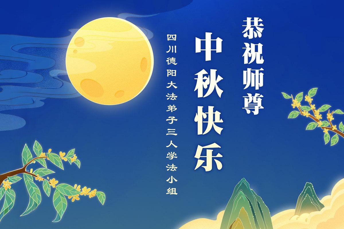 四川省德陽三人學法小組大法弟子恭祝師尊中秋節快樂!